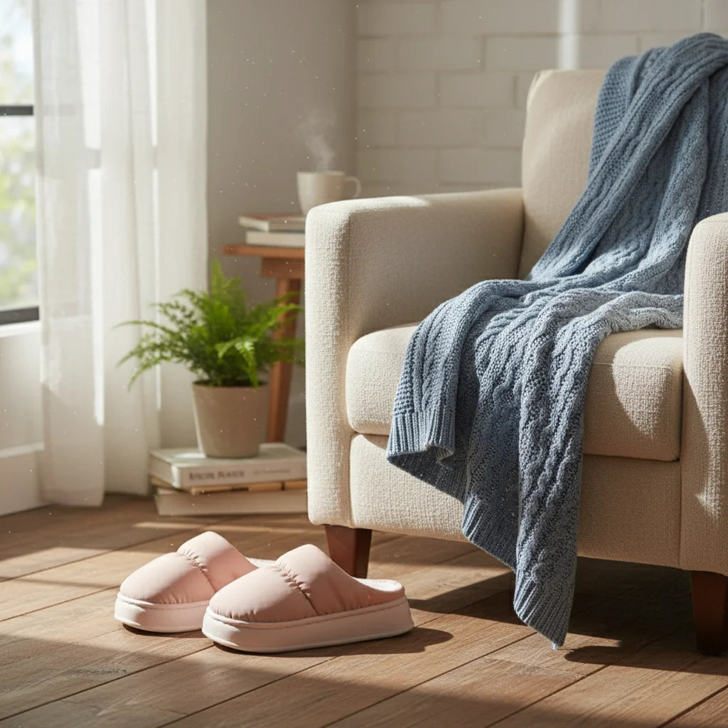Nous avons méticuleusement choisi des matériaux de qualité pour que le confort enveloppant de vos chaussons demeure. Avec un entretien doux, ils continueront de vous offrir un sanctuaire de douceur jour après jour, prolongeant votre havre de paix.